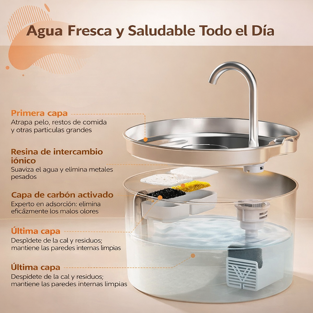 He probado muchísimas fuentes de plástico baratas a lo largo de los años, y ninguna me duró. Eran ruidosas, difíciles de limpiar o mis gatos simplemente las ignoraban. Esta es...